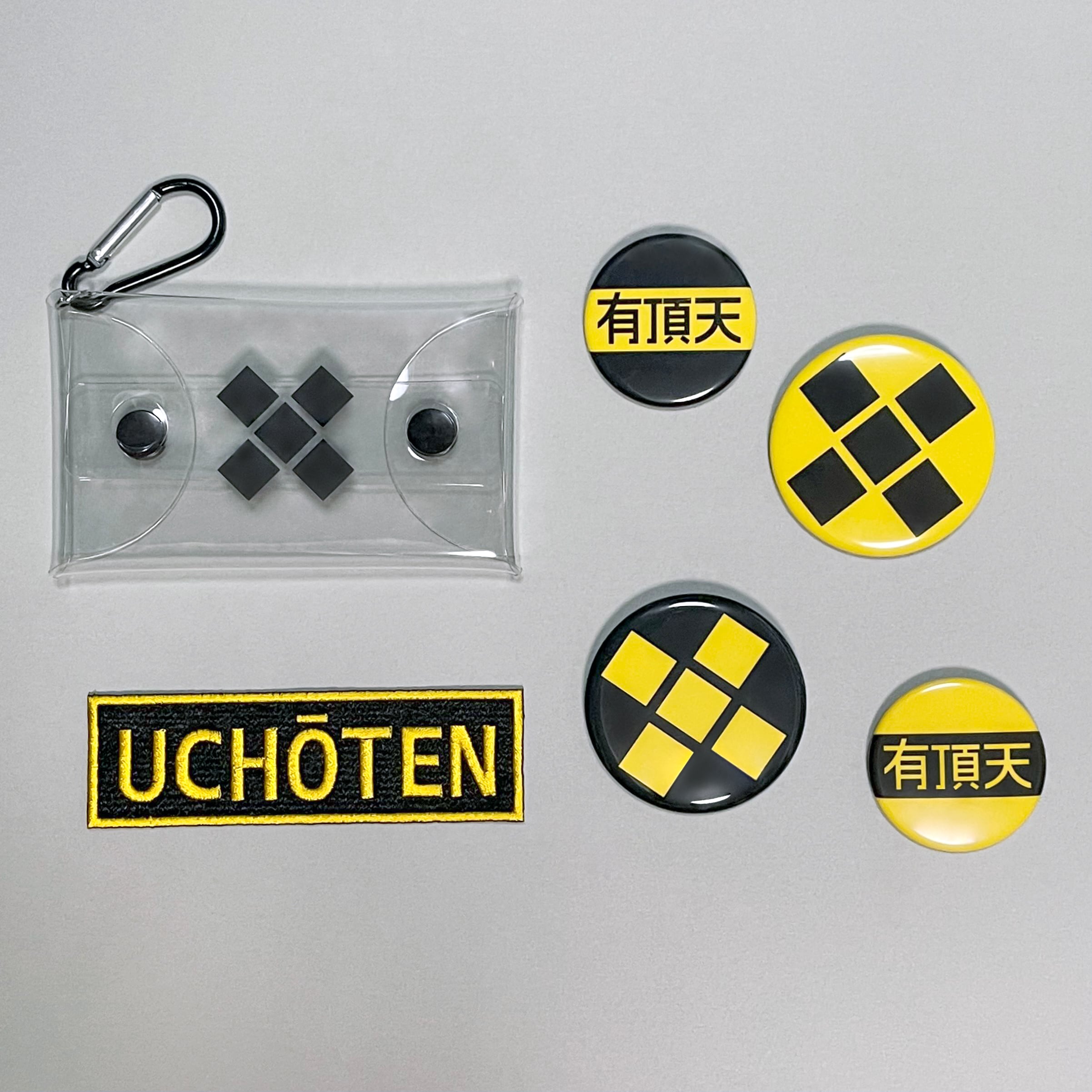 ショルダーバッグ、バッジ4個、刺繡ワッペン、クリアポーチのセット